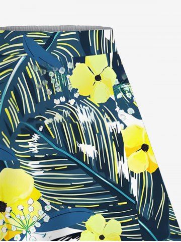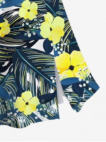 Flowers Tropical Leaf Print Plus Size Matching Hawaii Beach Outfit For Couples - Blue