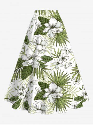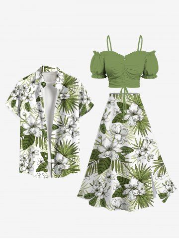 Flowers Tropical Leaf Print Plus Size Matching Hawaii Beach Outfit For Couples - Green
