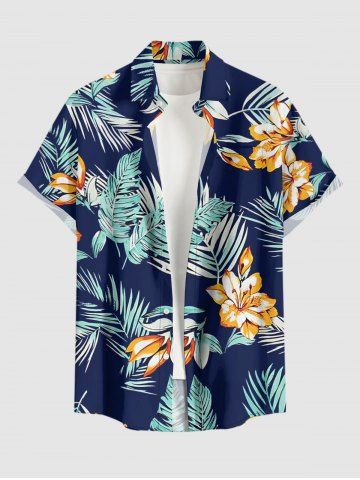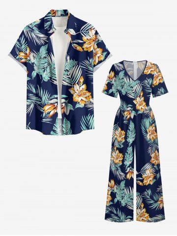 Flowers Tropical Leaf Print Plus Size Matching Hawaii Beach Outfit For Couples - Deep Blue