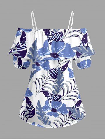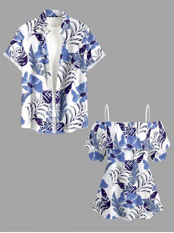 Flowers Tropical Leaf Print Plus Size Matching Hawaii Beach Outfit For Couples - Sky Blue