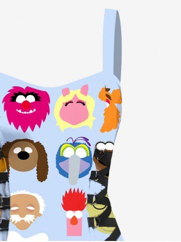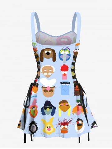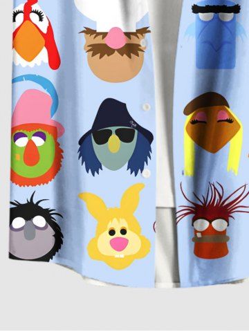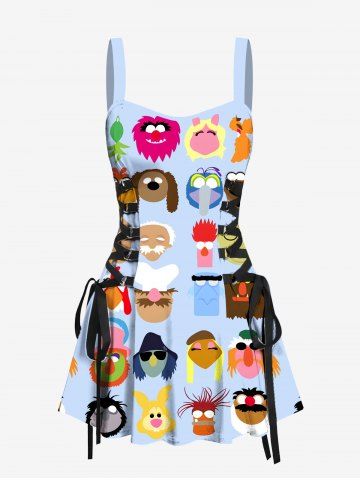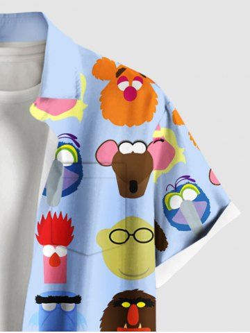 Funny Cartoon Role Print Plus Size Matching Hawaii Beach Outfit For Couples - Light Blue