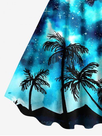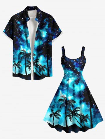 Matching Hawaiian Outfits > Galaxy Star Coconut Tree Print Plus Size Matching Hawaii Beach Outfit For Couples