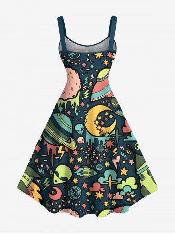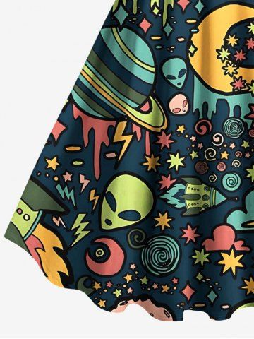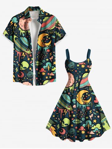 Matching Hawaiian Outfits > Galaxy Star Moon Planet Alien Print Plus Size Matching Hawaii Beach Outfit For Couples