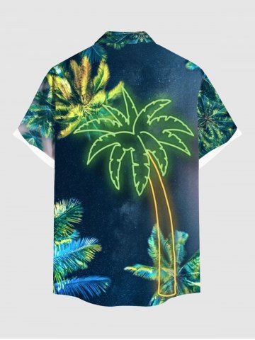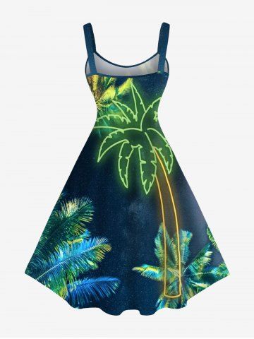 Glitter Coconut Tree Galaxy Print Plus Size Matching Hawaii Beach Outfit For Couples - Midnight Blue