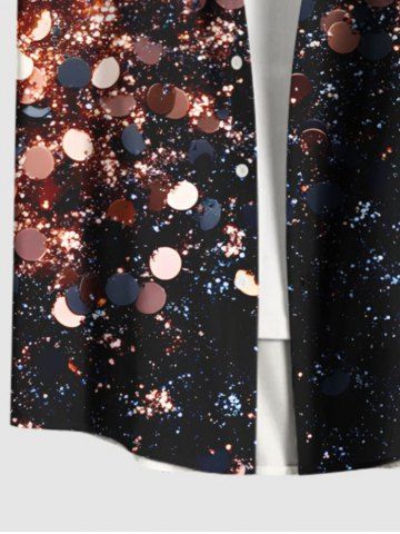 Glitter Galaxy Sequins Print Plus Size Matching Hawaii Beach Outfit For Couples - Black
