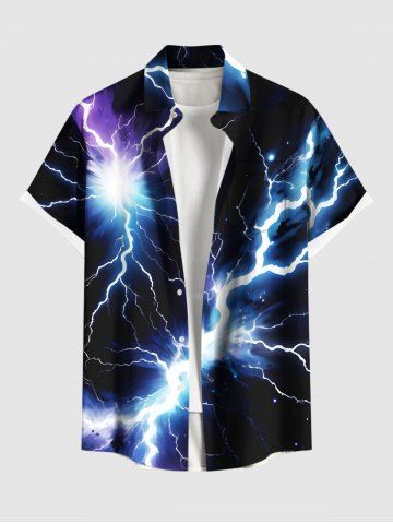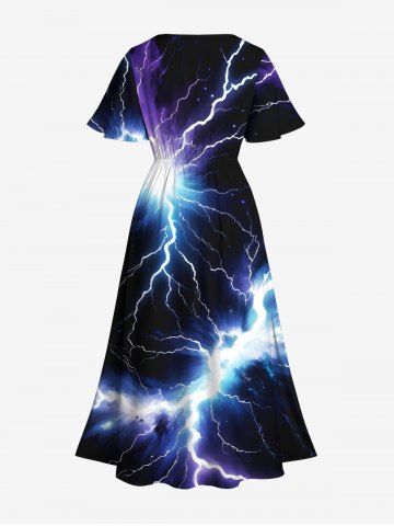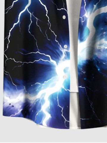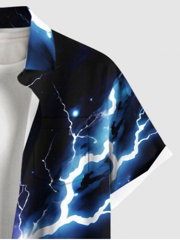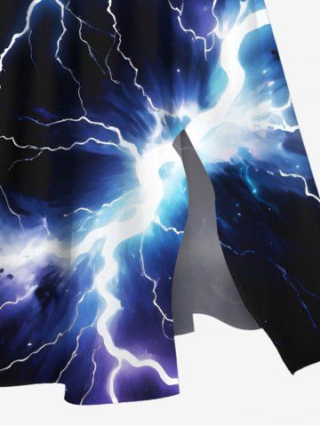 Glitter Lightning Print Plus Size Matching Hawaii Beach Outfit For Couples - Deep Blue
