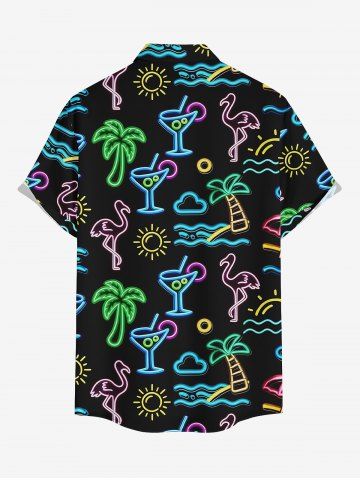 Glitter Neon Coconut Tree Flamingo Juice Print Matching Hawaii Beach Outfit For Couples - Black