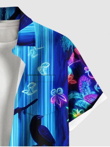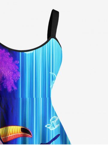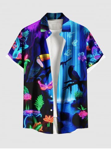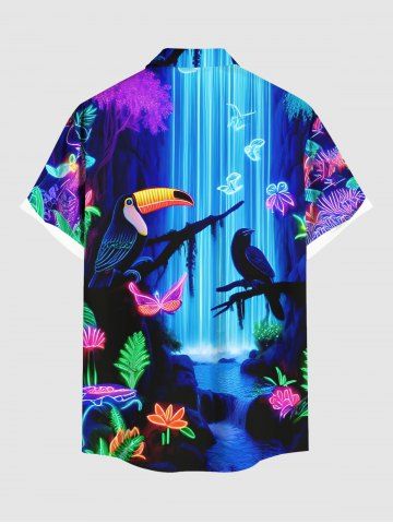 Glitter Neon Flower Plant Parrot Butterfly Fall Print Plus Size Matching Hawaii Beach Outfit For Couples - Sky Blue