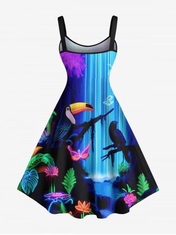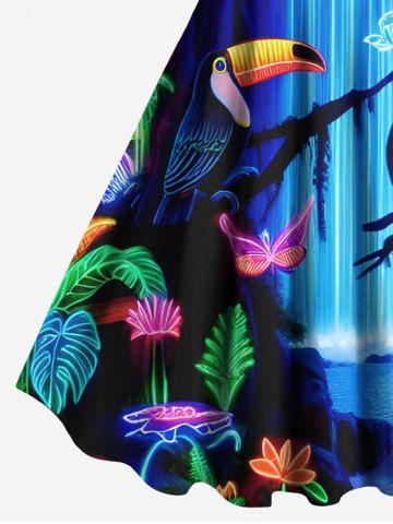 Matching Hawaiian Outfits > Glitter Neon Flower Plant Parrot Butterfly Fall Print Plus Size Matching Hawaii Beach Outfit For Couples