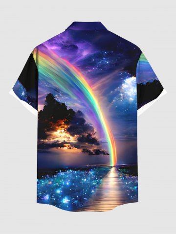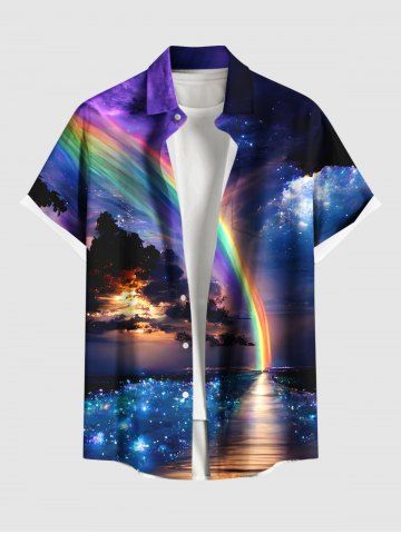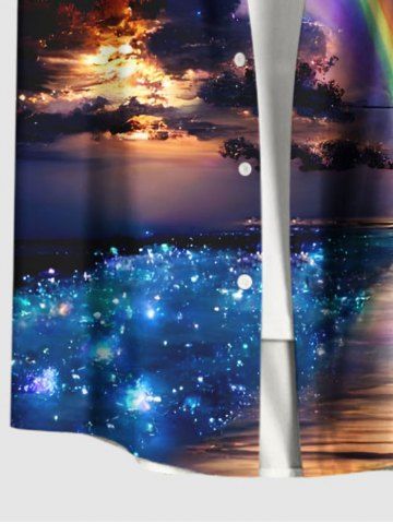 Matching Hawaiian Outfits > Glitter Ombre Galaxy Aurora Dusk Sea Print Plus Size Matching Hawaii Beach Outfit For Couples