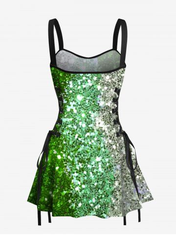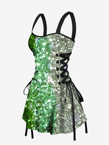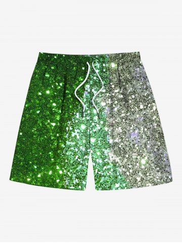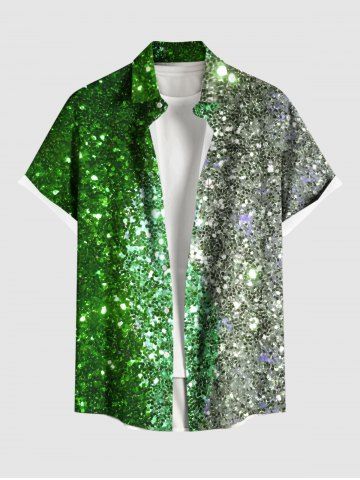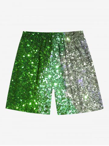Glitter Sparkling Contrast Two Tone Sequins Print Matching Hawaii Beach Outfit For Couples - Green