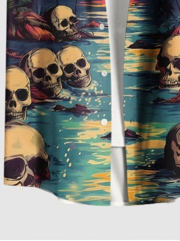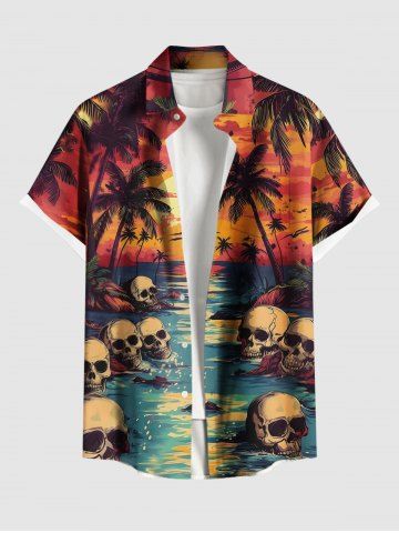 Matching Hawaiian Outfits > Halloween Costume Matching Hawaii Shirt and Romper Plus Size Beach Outfit Coconut Tree Skulls Sun Seascape Printed for Couples