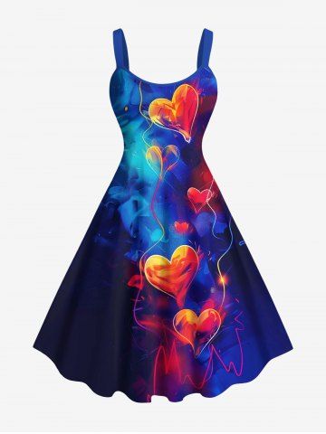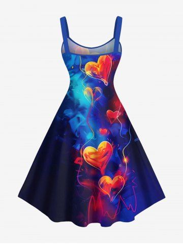 Heart Balloon Ombre Print Valentines Plus Size Matching Hawaii Beach Outfit For Couples - Deep Blue