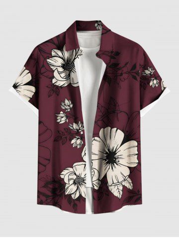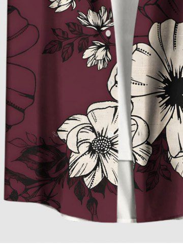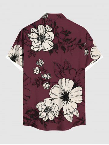 Hibiscus Flower Branch Print Shirt Swimsuit Plus Size Matching Hawaii Beach Outfit For Couples - Red Wine
