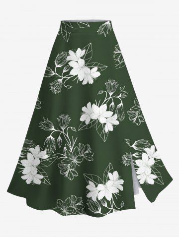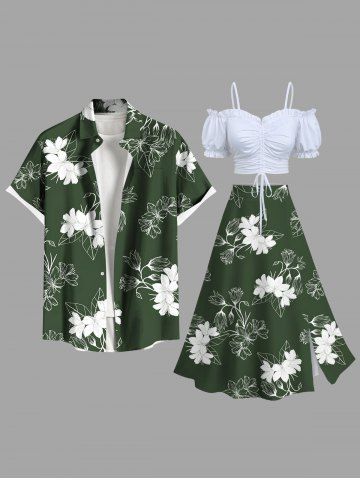 Matching Hawaiian Outfits > Hibiscus Flower Leaf Branch Print Plus Size Matching Hawaii Beach Outfit For Couples