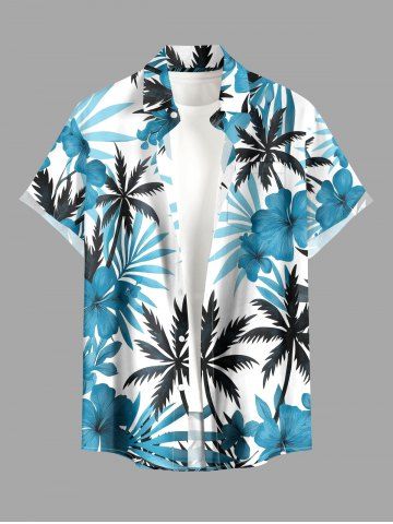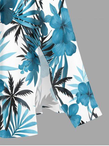 Hibiscus Flower Leaf Coconut Tree Print Plus Size Matching Hawaii Beach Outfit For Couples - Light Blue