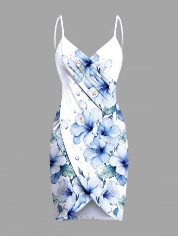 Hibiscus Flower Leaf Print Plus Size Matching Hawaii Beach Outfit For Couples - White