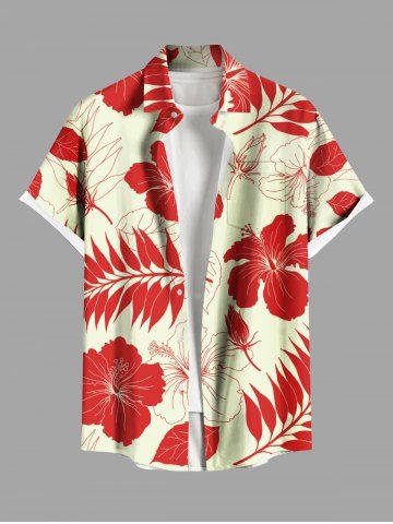 Hibiscus Flower Leaf Tropical Print Plus Size Matching Hawaii Beach Outfit For Couples - Red