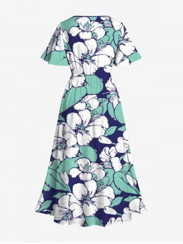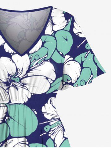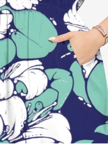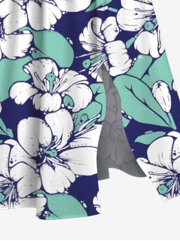 Hibiscus Flower Leaf Tropical Print Plus Size Matching Hawaii Beach Outfit For Couples - Sky Blue