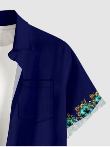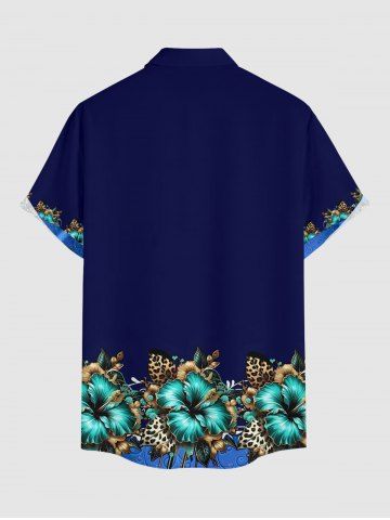 Hibiscus Flower Leopard Leaf Print Plus Size Matching Hawaii Beach Outfit For Couples - Cadetblue