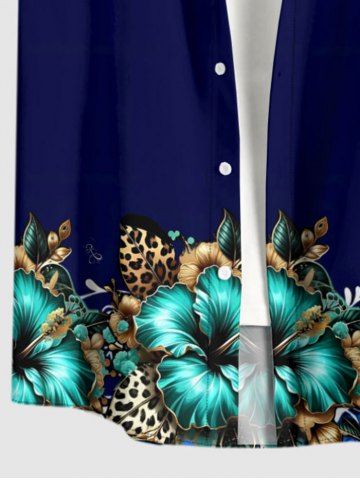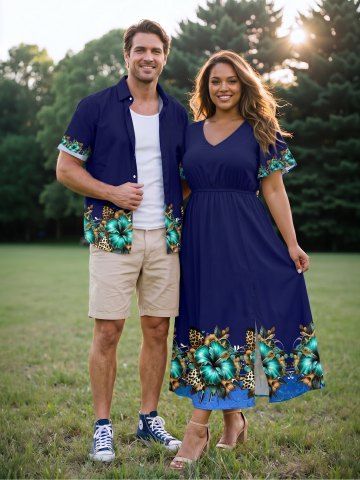 Matching Hawaiian Outfits > Hibiscus Flower Leopard Leaf Print Plus Size Matching Hawaii Beach Outfit For Couples