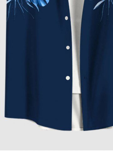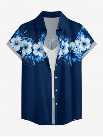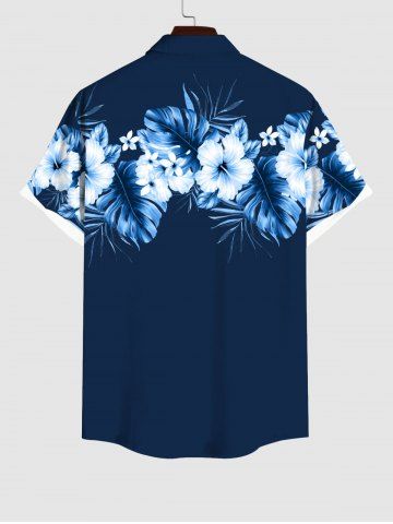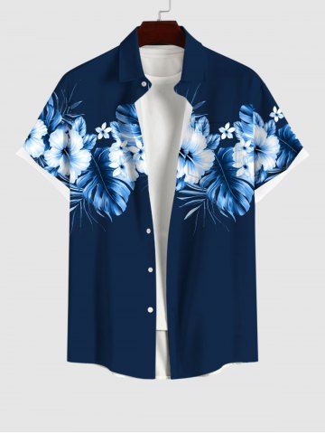 Plus Size Tropical Leaf Hibiscus Flowers Print Buttons Pocket Hawaii Shirt For Men