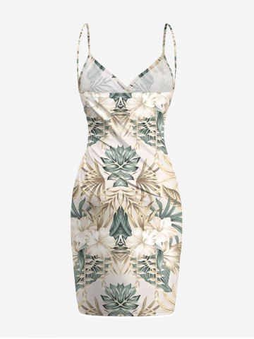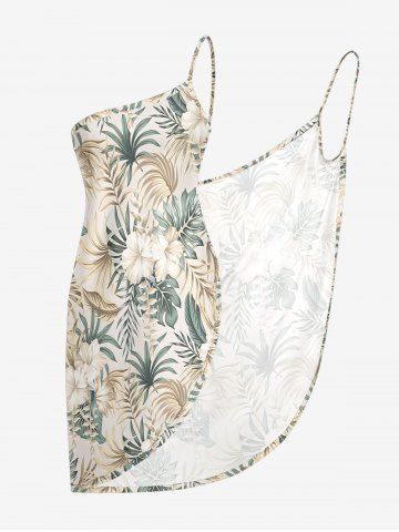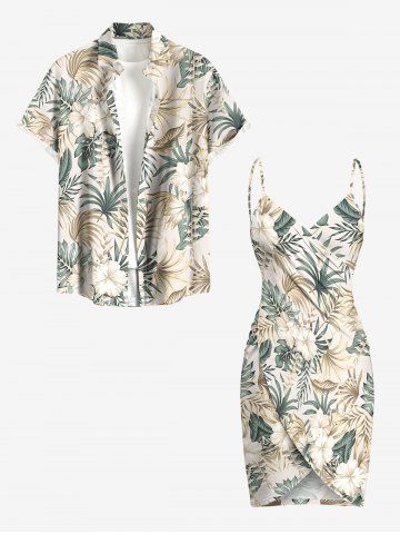 Matching Hawaiian Outfits > Hibiscus Flower Tropical Leaf Print Plus Size Matching Hawaii Beach Outfit For Couples