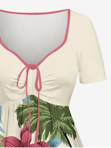 Matching Hawaiian Outfits > Hibiscus Flower Tropical Leaf Print Plus Size Matching Hawaii Beach Outfit For Couples