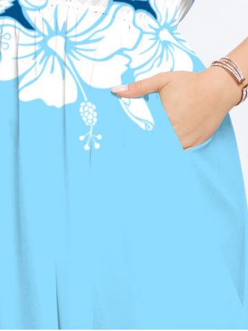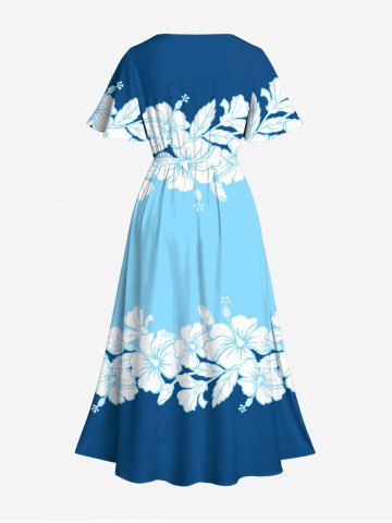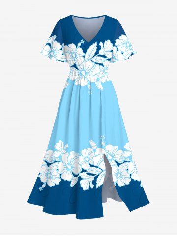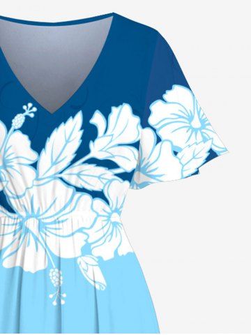 Hibiscus Flowers Colorblock Print Plus Size Matching Hawaii Beach Outfit For Couples - Blue