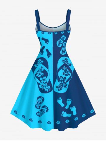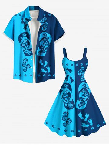 Matching Hawaiian Outfits > Hibiscus Flowers Flip Flops Colorblock Feet Print Plus Size Matching Hawaii Beach Outfit For Couples