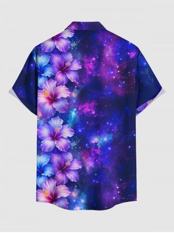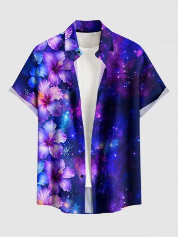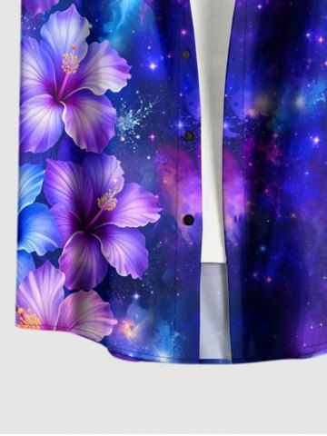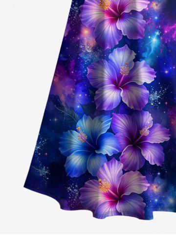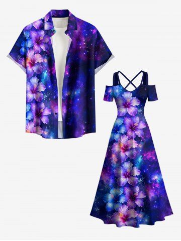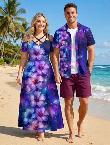 Matching Hawaiian Outfits > Hibiscus Flowers Galaxy Print Plus Size Matching Hawaii Beach Outfit For Couples