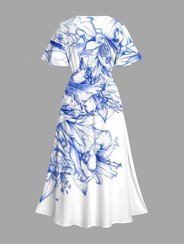 Hibiscus Flowers Leaf Print Plus Size Matching Hawaii Beach Outfit For Couples - White