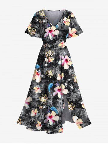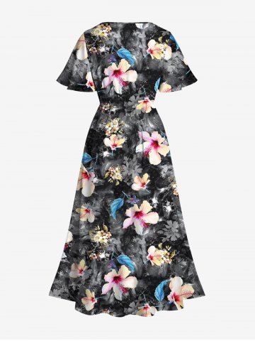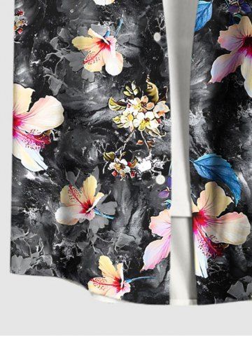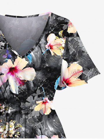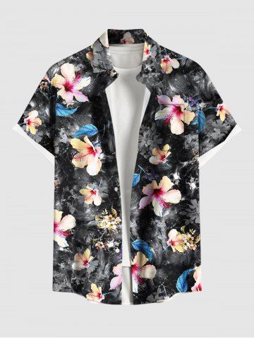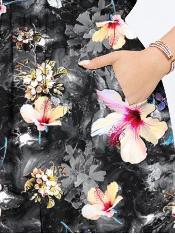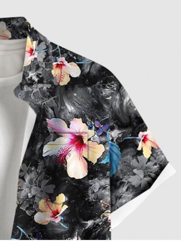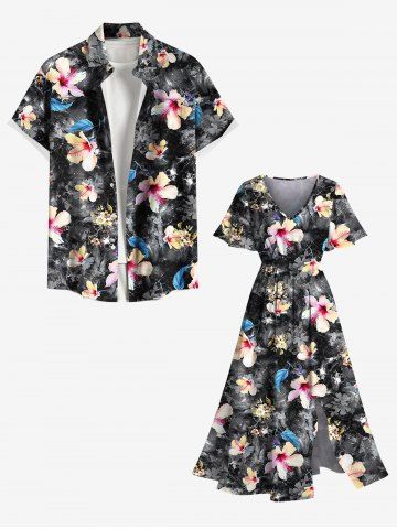 Hibiscus Flowers Leaf Print Plus Size Matching Hawaii Beach Outfit For Couples - Black