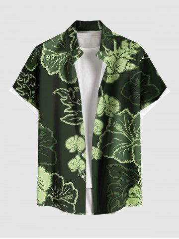 Hibiscus Flowers Leaf Print Plus Size Matching Hawaii Beach Outfit For Couples - Green
