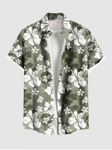 Hibiscus Flowers Leaf Print Plus Size Matching Hawaii Beach Outfit For Couples - Green