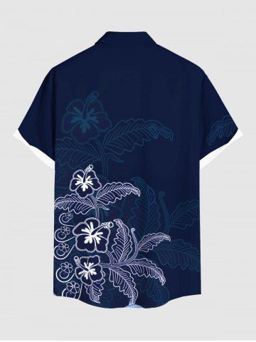 Hibiscus Flowers Leaf Print Plus Size Matching Hawaii Beach Outfit For Couples - Navy Blue