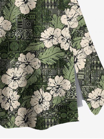 Hibiscus Flowers Leaf Scarf Print Plus Size Matching Hawaii Beach Outfit For Couples - Green