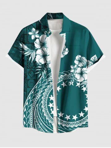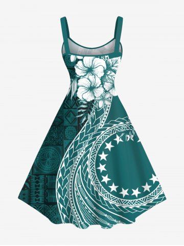Hibiscus Flowers Stars Scarf Print Plus Size Matching Hawaii Beach Outfit For Couples - Deep Green
