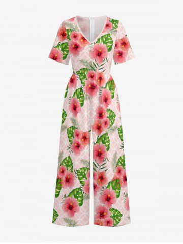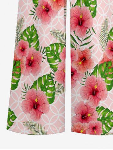 Hibiscus Flowers Tropical Leaf Geometric Pattern Print Plus Size Matching Hawaii Beach Outfit For Couples - Pink