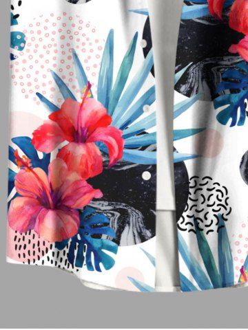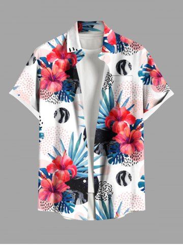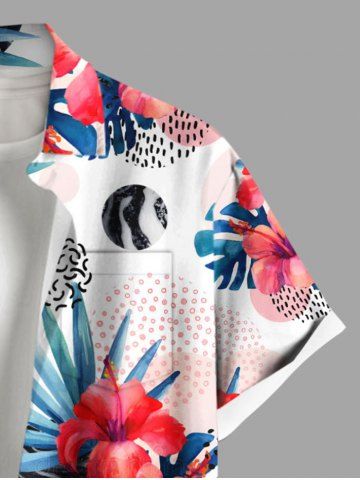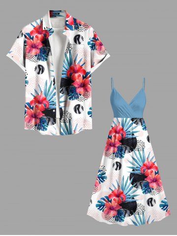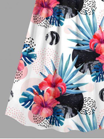 Matching Hawaiian Outfits > Hibiscus Flowers Tropical Leaf Geometrical Circle Print Plus Size Matching Hawaii Beach Outfit For Couples