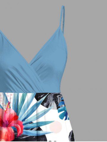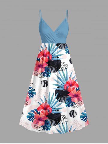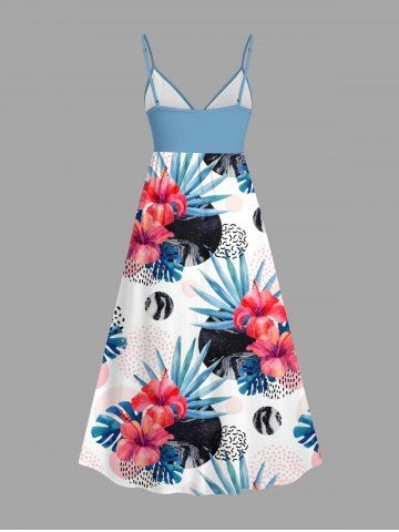 Hibiscus Flowers Tropical Leaf Geometrical Circle Print Plus Size Matching Hawaii Beach Outfit For Couples - Light Blue