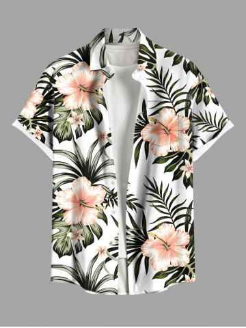 Hibiscus Flowers Tropical Leaf Print Plus Size Matching Hawaii Beach Outfit For Couples - White