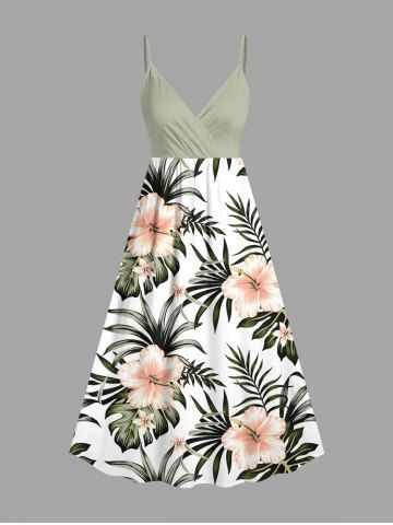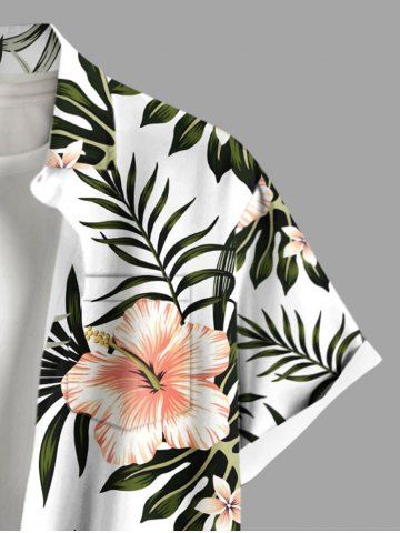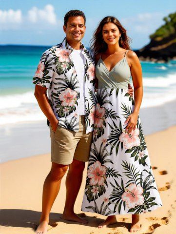 Matching Hawaiian Outfits > Hibiscus Flowers Tropical Leaf Print Plus Size Matching Hawaii Beach Outfit For Couples