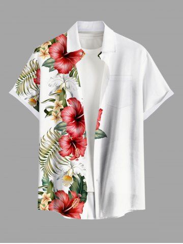 Hibiscus Flowers Tropical Leaf Print Plus Size Matching Hawaii Beach Outfit For Couples - White