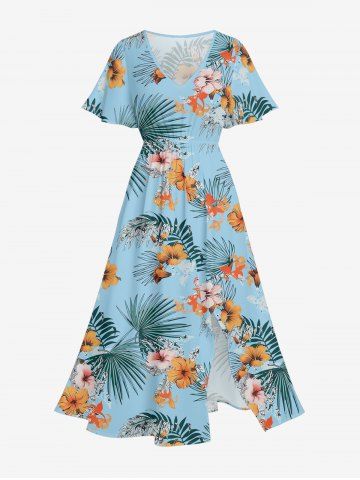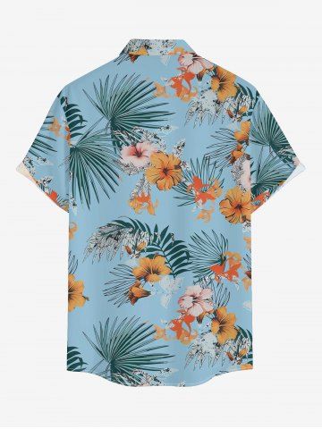 Hibiscus Flowers Tropical Leaf Print Plus Size Matching Hawaii Beach Outfit For Couples - Denim Blue