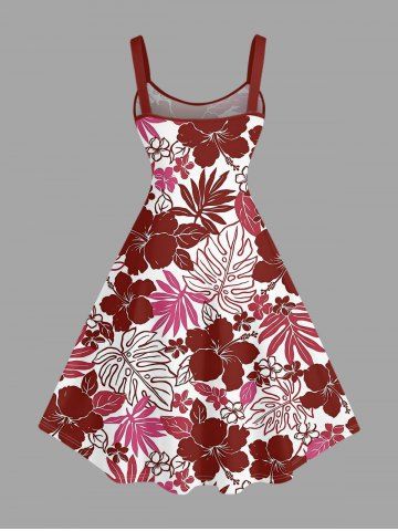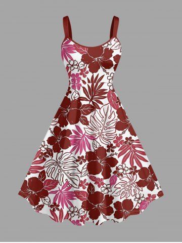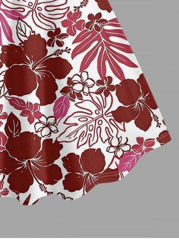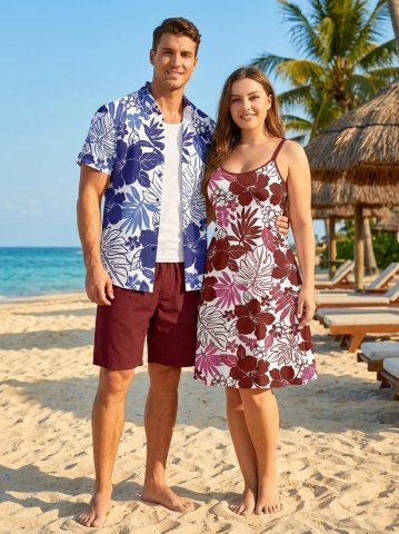 Matching Hawaiian Outfits > Hibiscus Flowers Tropical Leaf Print Plus Size Matching Hawaii Beach Outfit For Couples