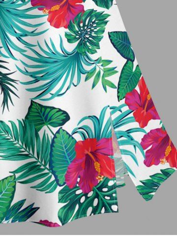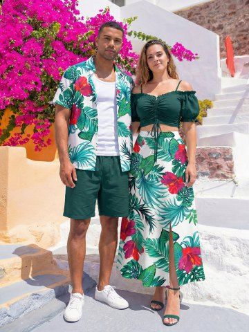 Matching Hawaiian Outfits > Hibiscus Flowers Tropical Leaf Print Plus Size Matching Hawaii Beach Outfit For Couples