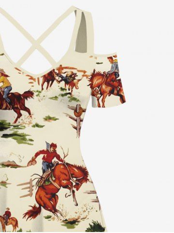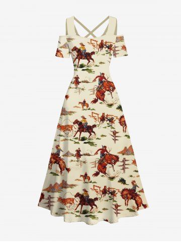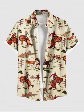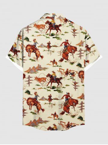 Horse Rider Print Plus Size Western Cowboy Style Matching Hawaii Beach Outfit For Couples - Light Coffee