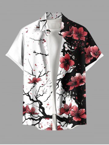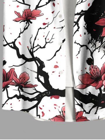 Matching Hawaiian Outfits > Ink Painting Peach Blossom Flower Branch Print Plus Size Matching Hawaii Beach Outfit For Couples