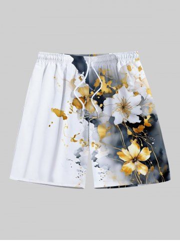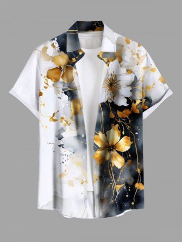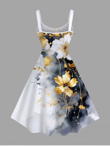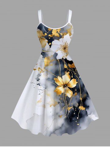 Ink Painting Tie Dye Hibiscus Flower Print Plus Size Matching Hawaii Beach Outfit For Couples - Gray